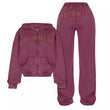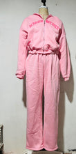 Step into casual glam with this matching sports set—featuring a cropped zip-up hoodie with bold letter detail and loose drawstring joggers for that perfect streetwear vibe. Whether you’re running errands, chilling with friends, or flexing your fit online, this set is all about comfort that slays.