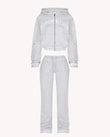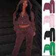 - Two-piece matching set: cropped zip hoodie + drawstring joggers