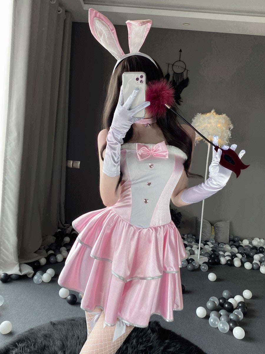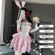 Bring the fantasy to life in this Kawaii Bunny Maid Halloween Costume . Featuring a playful pink + white corset-style top, bow details, and a layered mini skirt, this set is flirty, fun, and unforgettable. Complete with matching gloves and bunny ear accessories, it’s the ultimate pick for parties, cosplay, or a sexy twist on maid-core fashion.
