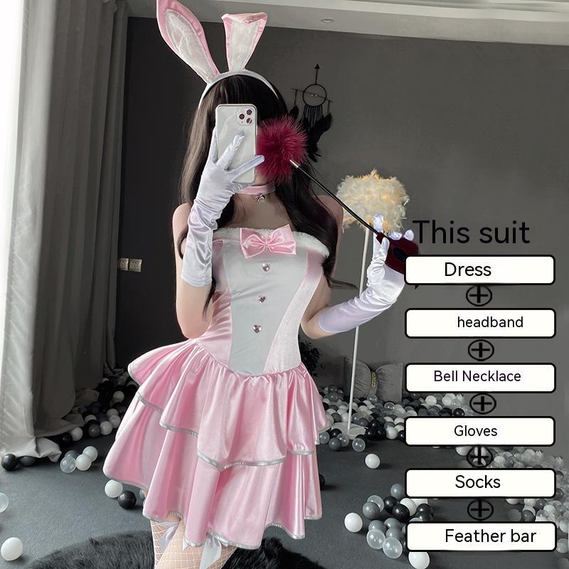 Set A: Dress+Rabbit Ears+Collar+Gloves/Set B: Dress+Rabbit Ears+Collar+Gloves+Mesh Socks/Set C: Dress+Rabbit Ears+Collar+Gloves+Mesh Socks+Feather Stick