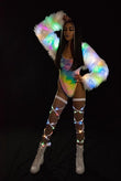LED Faux Fur Festival Jacket – Light-Up Rave Coat – Halloween & Nightclub Performance Wear