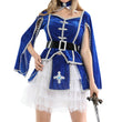 Pirate Princess Halloween Cosplay Costume – Blue Royal Dress with Belt & Cape