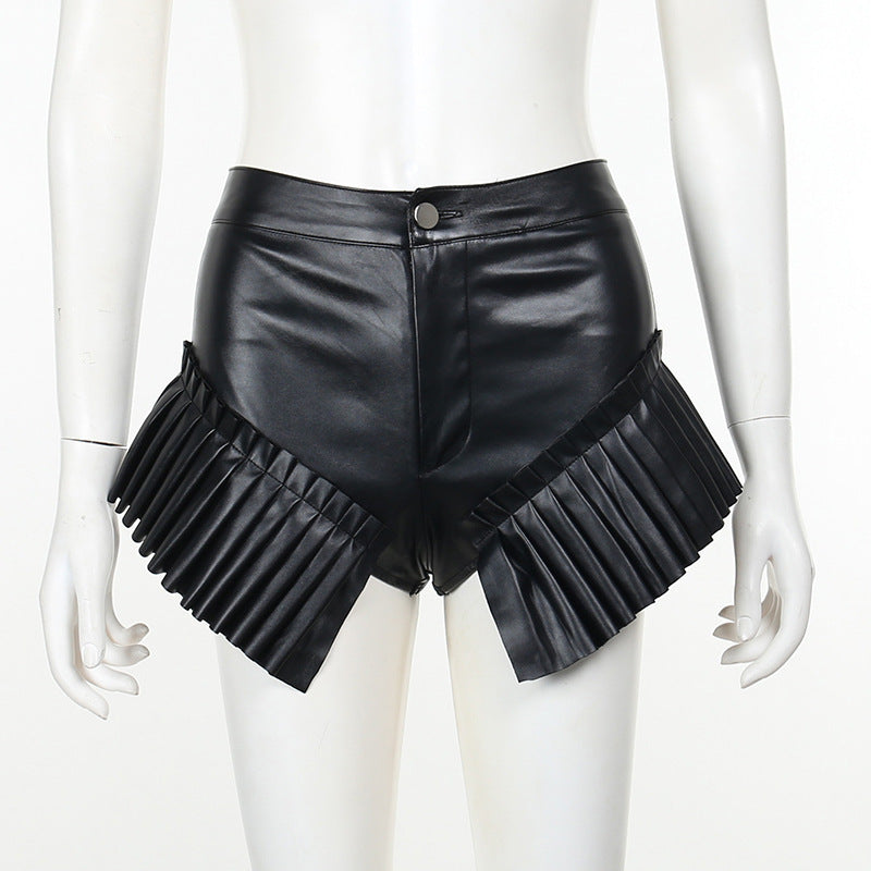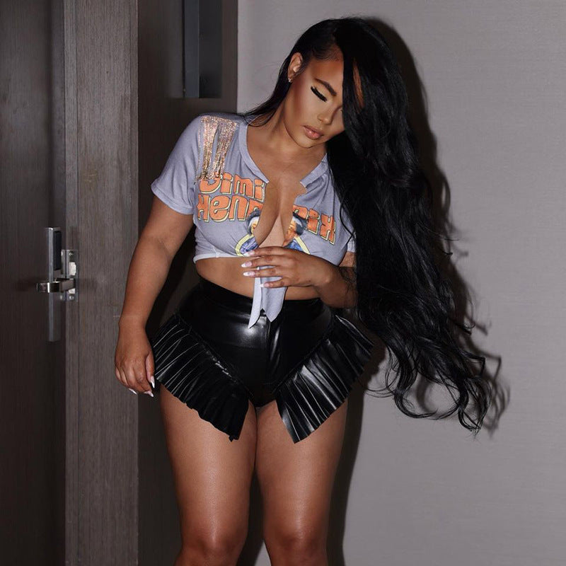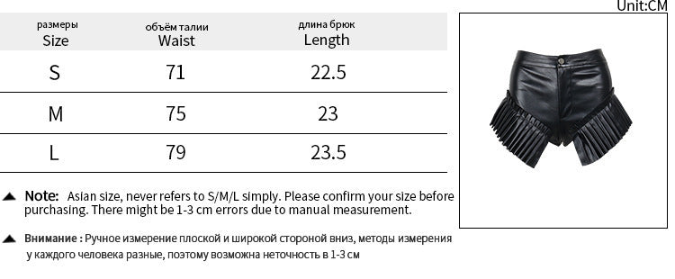Sexy Black Faux Leather Fringe Shorts – High-Waist Clubwear Statement Bottoms