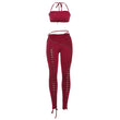 Make every entrance unforgettable in this bold 2-piece set — a halter-style crop top with tie-back straps, paired with high-waist lace-up pants that hug your curves in all the right places.